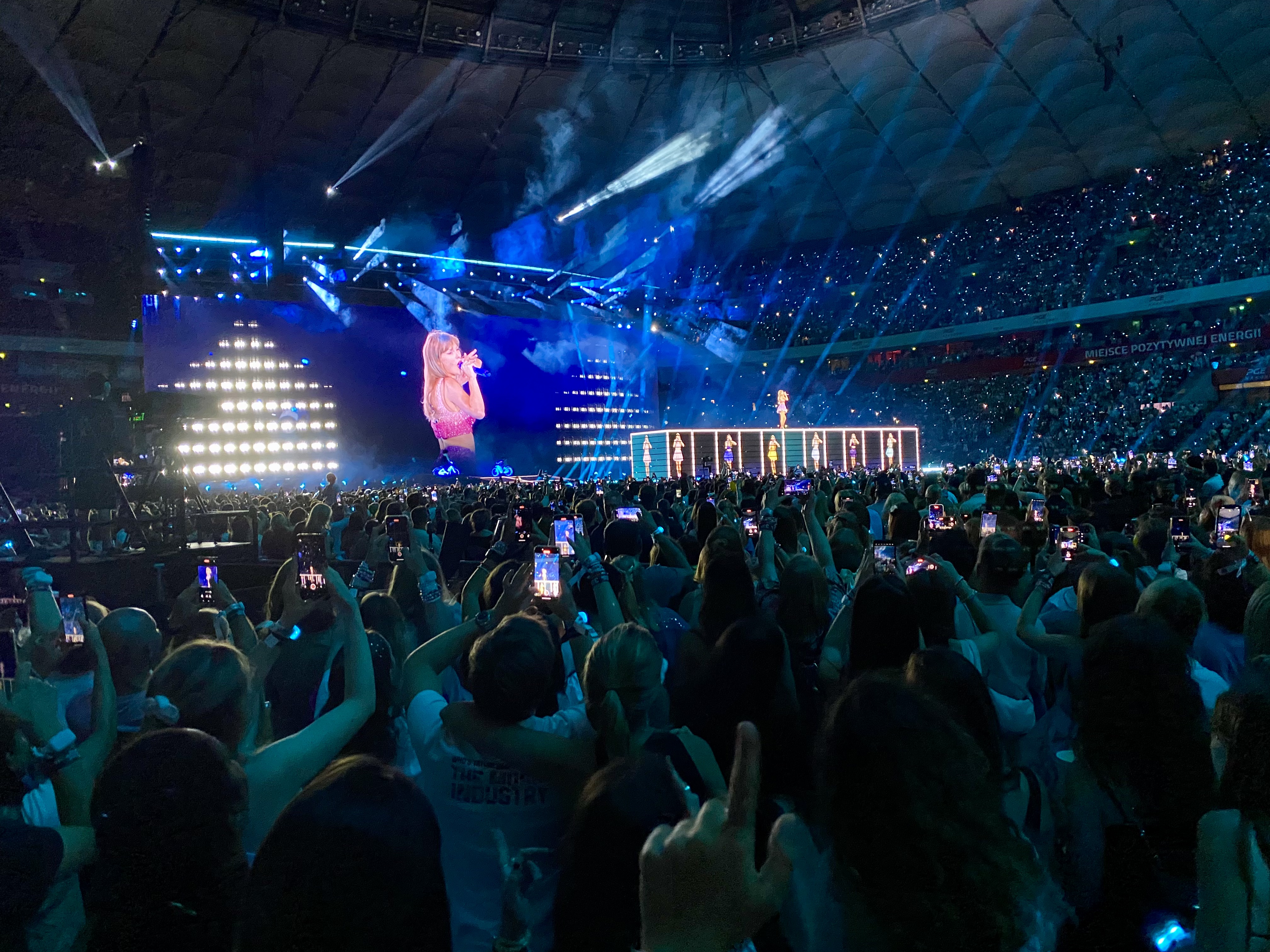 5. Surprise. A good structure should leave room for surprise. One of Roy Peter Clark’s pieces of wisdom I go back to is about making your readers stumble upon gold coins, meaning unexpected information or moments in your piece. Taylor does this in many ways – her diving into a hole in the stage was neat – but a simpler and more effective one is singing two different songs every night, acoustically: one on guitar, one on piano. Someone told me he wished he caught a concert where she sang Exile – she did that in Warsaw, on piano.