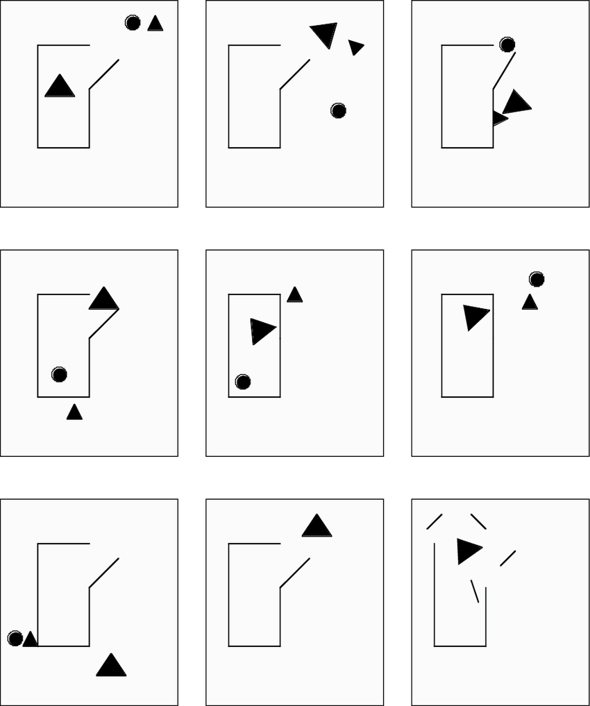 So when people in this experiment looked at geometrical figures moving, they looked for the danger. The large triangle seemed stronger and more aggressive than the smaller figures, which seemed nice and playful. The large triangle was thought of as a bully, just dying to break the fun up.