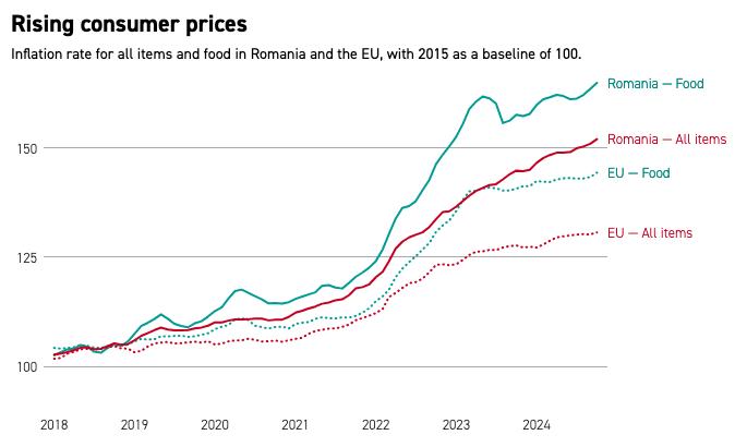 Just look at these stats: food is more than 50% more expensive than before the pandemic, and cost of living is higher than the EU average. Those of us in Bucharest are more privileged, but the pain is real. Romania also has the largest number of people in the EU – 32 percent – at risk of poverty and social exclusion, and the in-country disparities are staggering.