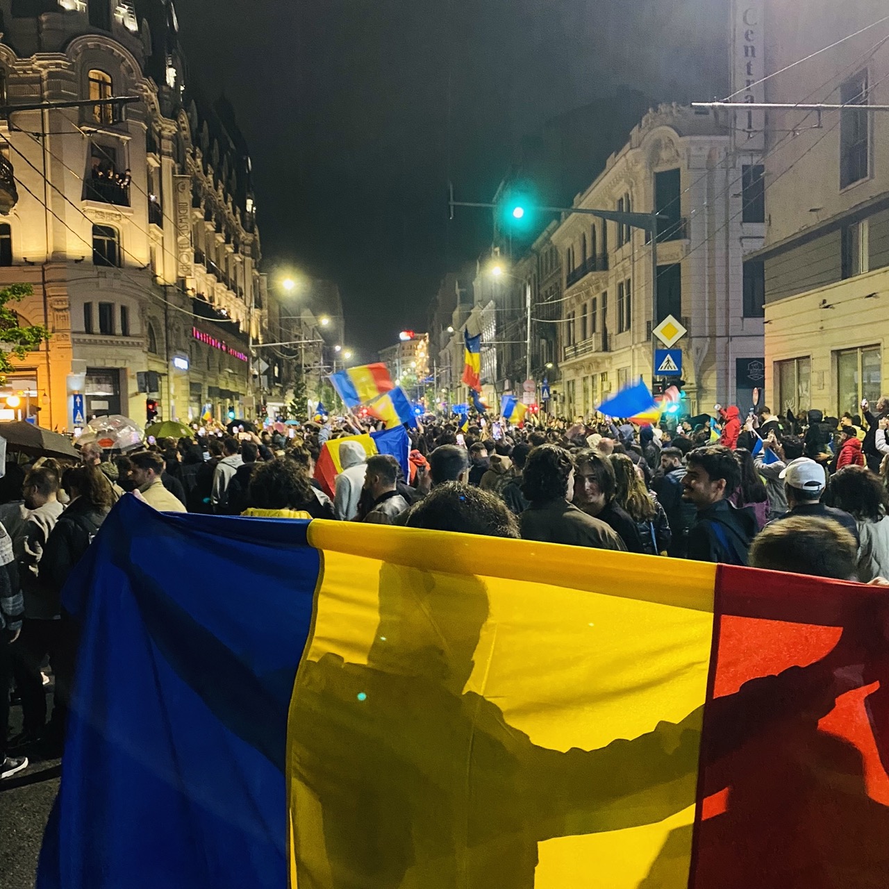 On Sunday night I walked to Cișmigiu Park to see the celebrations for Nicușor Dan. People were waving Romanian and EU flags, chanting his name, chanting victory, and also chanting against his opponent, George Simion.