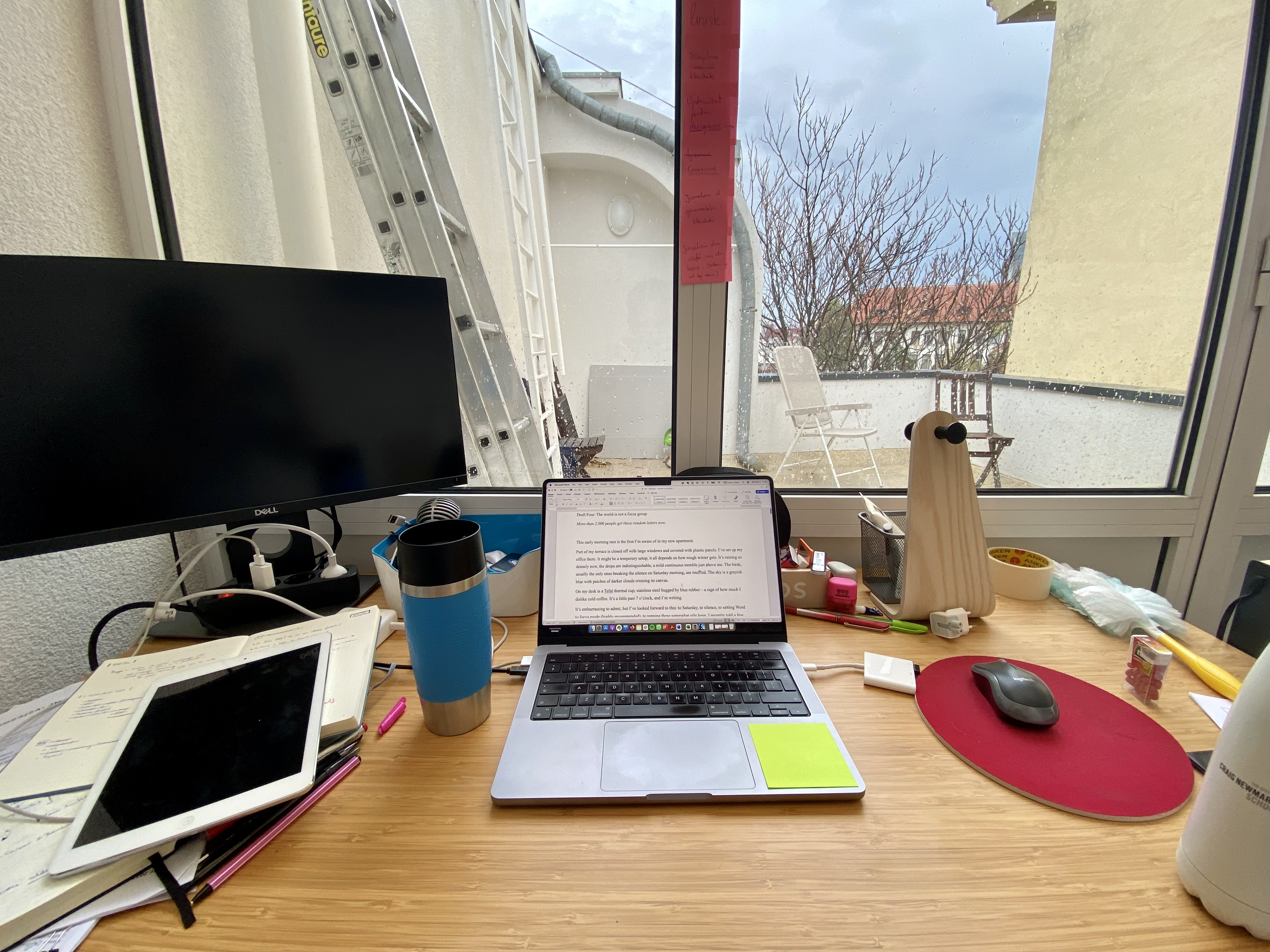 On my desk is a Tefal thermal cup, stainless steel hugged by blue rubber – a sign of how much I dislike cold coffee. It’s a little past 7 o’clock, and I’m writing.